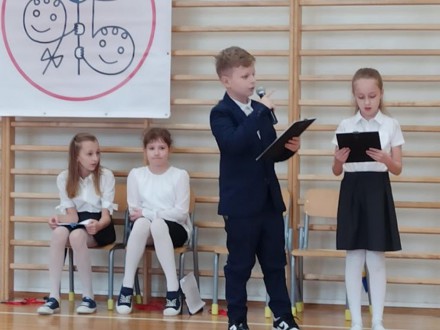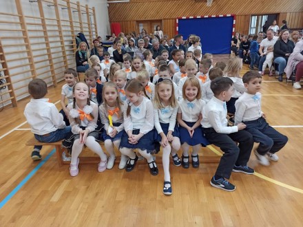 W dniu 25 października br. uczniowie klas pierwszych zdali swój pierwszy w życiu egzamin. Ich starsi koledzy z 4 klasy przygotowali dla nich 6 zadań, w których musieli wykazać się znajomością literek i cyferek, a także wiedzą o tym, jak należy się kulturalnie zachowywać, zdrowo odżywiać i bezpiecznie poruszać po drodze. Pierwszaki zaprezentowały także umiejętność śpiewu i tańca oraz wykazały się wiedzą podczas rozwiązywania zagadek. Wszyscy zgromadzeni w sali gimnastycznej jednogłośnie orzekli, że poradzili sobie wspaniale i z radością możemy powitać ich w gronie szkolnej braci.