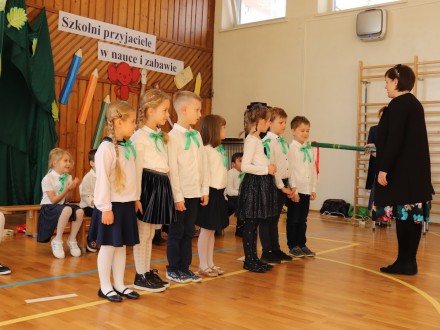 Zanim pierwszoklasiści zostali przyjęci do grona społeczności szkolnej musieli przedstawić to, czego już się w szkole nauczyli. Odświętnie ubrani i bardzo przejęci przystąpili do zaprezentowania swoich umiejętności. Śpiewali piosenki, recytowali wiersze, pięknie tańczyli. Wykazali się również znajomością zasad przechodzenia przez jezdnię i zachowania w szkole. Wszystkie dzieci wspaniale zdały "egzamin pierwszoklasisty". Doniosłym momentem uroczystości było ślubowanie pierwszoklasistów, które wzbudziło wiele emocji. Aktu pasowania na ucznia dokonała Pani dyrektor Anna Hanusiak. Tym samym pierwszaki zostały włączone do grona uczniów Szkoły Podstawowej nr 95 im. Władysława Broniewskiego w Krakowie. Każde dziecko otrzymało od swojej wychowawczyni dyplom pasowania na ucznia, a od Rady Rodziców drobny upominek.
