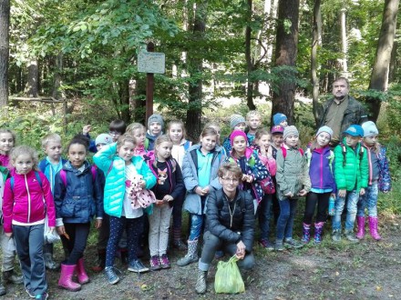 Wraz z nastaniem jesieni klasy drugie wybrały się na spacer po lesie. Przewodnikiem był leśnik, który odkrywał przed uczniami jego tajemnice. Dzieci poznały warstwową budowę lasu, dowiedziały się co to ściółka leśna i jak ważną pełni rolę, ćwiczyły też umiejętność rozpoznawania roślin leśnych. Podczas spaceru uczniowie mieli możliwość obserwować i podziwiać ogromne kopce mrówek oraz przepiękne - choć trujące - okazy muchomora czerwonego. Niektórym udało się znaleźć też jadalne grzyby. Do szkoły dzieci przywiozły pełno leśnych skarbów. Obcowanie z przyrodą to wspaniała lekcja!