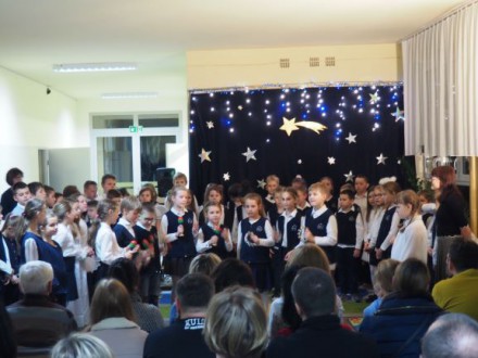 „Zbliżają się Święta Bożego Narodzenia- święta poprzedzone miłością wigilijnego wieczoru, czasem choinki i polskiej kolędy. I my dzisiaj, w gronie kolegów, rodziców i nauczycieli pragniemy kontynuować ten piękny polski obyczaj wspólnego kolędowania, radowania się z bycia razem.”