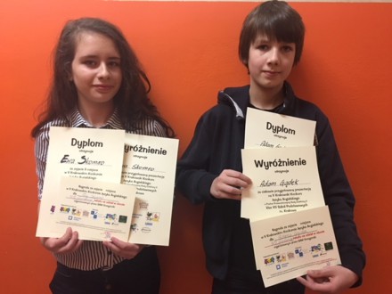 W etapie międzyszkolnym, wzięli udział najlepsi uczniowie ze szkół w Krakowie, z których wyłoniono ścisłych finalistów – 7 spośród wszystkich zgłoszonych szkół. Do finału konkursu zakwalifikowało się aż dwoje uczniów z naszej szkoły: Ewa Skomro kl. VIIa oraz Adam Gądek kl. VIIc.