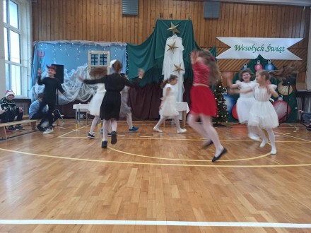 20 grudnia br. klasa 4a i 4b przedstawiła społeczności szkolnej świąteczny program artystyczny. W zabawnej inscenizacji wystąpiły między innymi aniołki, diabełki i grupa kolędnicza. Uczniowie przypomnieli zwyczaje i tradycje związane ze zbliżającymi się świętami Bożego Narodzenia. Nie zabrakło okolicznościowych piosenek i pokazów tanecznych. Wspólny taniec aniołków i diabełka rozbawił widownię i zwrócił uwagę na istotę nadchodzących dni, czas pojednania, zgody i radości. Uroczystość dopełnił występ szkolnego chóru, który zaprezentował kolędy i pastorałki.