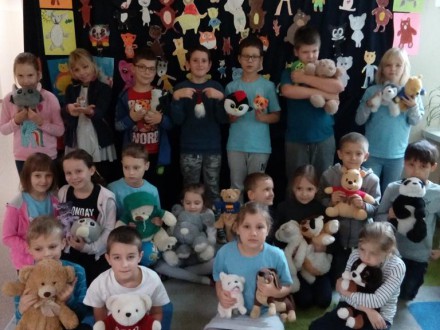 25 listopada obchodziliśmy w naszej szkole Światowy Dzień Pluszowego Misia, który jest towarzyszem i przyjacielem wszystkich dzieci. Moda na misie nie przemija, mimo coraz nowocześniejszych i coraz bardziej atrakcyjnych zabawek. Nauczyciele w tym dniu przypomnieli historię powstania tego święta, oraz zapoznali dzieci z fragmentami książek, których bohaterami są misie. Dzieci liczyły z misiami, pisały opis misia, bawiły się odkodowując portrety misia, oraz uczestniczyły w grach i zabawach przygotowanych przez nauczycieli.