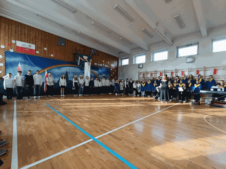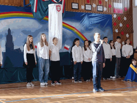 13 listopada 2025 r. w naszej szkole odbyła się uroczystość upamiętniająca rocznicę Odzyskania przez Polskę Niepodległości. Wydarzenie zostało przygotowane przez uczniów klas 7a i 7c, którzy zaprezentowali inscenizację przedstawiającą najważniejsze momenty z historii walki o wolność. Występ wzbogaciły patriotyczne pieśni w wykonaniu szkolnego chóru, które nadały uroczystości podniosły i wzruszający charakter.