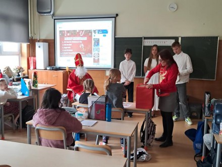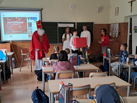 6 grudnia, w naszej szkole miało miejsce wyjątkowe wydarzenie! Odwiedził nas Święty Mikołaj, który na ziemi był biskupem z Miry. Jako biskup, słynął z wielkiego serca i pomocy ubogim, a jego dobre uczynki sprawiły, że po śmierci został kanonizowany i teraz mieszka w niebie jako święty.