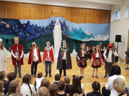 Dn. 22 grudnia 2017r. po uroczystych Wigiliach klasowych spotkaliśmy się na szkolnej uroczystości bożonarodzeniowej, przygotowanej przez uczniów kl. 4c i 6a.