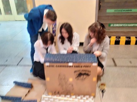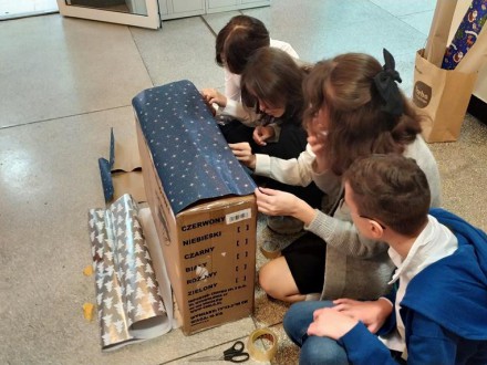 - Akcja Mikołajkowa - w tym roku dostaliśmy wielką przyjemność, aby stać się świętym Mikołajem dla Edwarda, podopiecznego Alma Spei Hospicjum dla Dzieci. Jego list i marzenie mikołajkowe było nie lada wyzwaniem ze względu na gabaryty prezentu, ale dzielne uczennice z klasy 8c poradziły sobie świetnie z jego zapakowaniem oraz ozdobieniem. Fundusze na prezent mikołajkowy zostały zebrane podczas jednego z zebrań z rodzicami w roku szkolnym 2023/2024.
