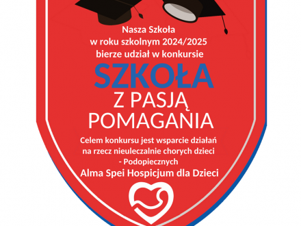 Empatia, wrażliwość, bezinteresowność oraz otwarte serca, to jedne z wielu cech naszej społeczności szkolnej, dlatego kolejny rok z rzędu nasza placówka przystąpiła do całorocznego Programu Szkoła z Pasją Pomagania organizowanego przez Alma Spei Hospicjum dla Dzieci w Krakowie. Ten profilaktyczno-edukacyjny projekt przeznaczony dla szkół podstawowych i ponadpodstawowych przekłada się na realną pomoc dla nieuleczalnie chorych dzieci.
