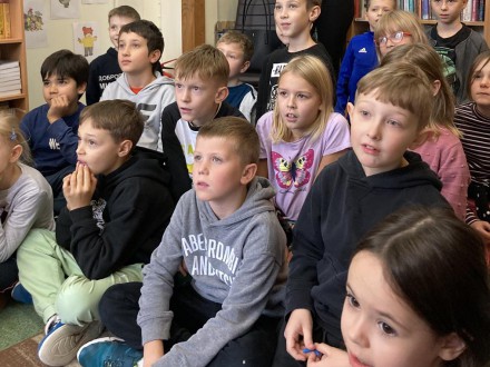 Z okazji Międzynarodowego Dnia Pluszowego Misia do biblioteki szkolnej zostali zaproszeni Uczniowie i Uczennice z klas drugich. Ósmoklasiści zapoznali swoich młodszych kolegów z historią Dnia Pluszowego Misia. Przygotowali teatrzyk kukiełkowy i przypomnieli, że pluszowy miś to zabawka symbol z niezwykłą historią. Wszystko zaczęło się od prezydenta Stanów Zjednoczonych – Teodora Roosvelta, który w 1902 roku wybrał się z przyjaciółmi na polowanie. Podczas wyprawy postrzelono małego niedźwiadka. Prezydent nakazał jego uwolnienie, a całą historię zilustrowano komiksem w waszyngtońskiej prasie. Jednym z czytelników gazety był pewien producent zabawek, który zainspirował się tym wydarzeniem i stworzył nową zabawkę dla dzieci, właśnie w formie pluszowego misia. Nazwał go Teddy Bear, co było oczywistym nawiązaniem do imienia prezydenta USA.