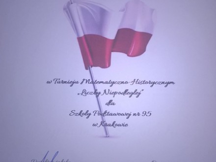 21 marca 2018 r. uczniowie naszej szkoły wzięli udział w eliminacjach turnieju Matematyczno- Historycznego "Liczby Niepodległej", który odbył się w Szkole Podstawowej z Oddziałami Integracyjnymi nr 158. Do turnieju zostało zgłoszonych 51 krakowskich szkół , przy czym tylko 7 szkół zakwalifikowało się do finału – z dumą informujemy, że znaleźliśmy się wśród nich!