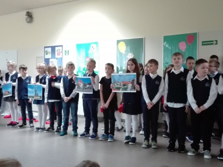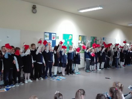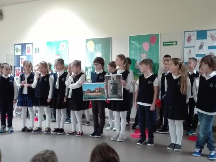 W części drugiej apelu uczniowie klas trzecich zaprezentowali program artystyczny „WOLNA I NIEPODLEGŁA”. Program był podsumowaniem projektu edukacyjnego realizowanego w klasach trzecich. Wiersze, piosenki oraz nagrania archiwalne pozwoliły młodszym kolegom i koleżankom poznać ważne wydarzenia z historii naszego kraju - od czasów zaborów poprzez I i II wojnę światową do czasów współczesnych, kiedy to Polska stała się krajem wolnym i niepodległym. Wszyscy z zainteresowaniem i w skupieniu wysłuchali tej ciekawej lekcji historii.