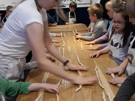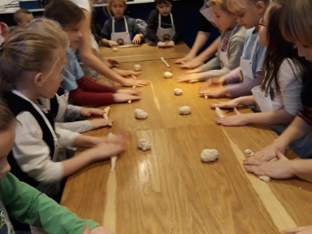 W dniu 6 marca 2019r., w ramach realizacji zadań z Projektu Edukacyjnego – „Prądnik – nasza mała ojczyzna” , uczniowie klasy 1d odwiedzili „Żywe Muzeum Obwarzanka”. Podczas warsztatów dzieci zapoznały się z historią krakowskiego obwarzanka, a także same go wykonywały. Wyrabianie ciasta , robienie sulek i zaplatanie warkocza było niezwykle ekscytującą pracą . Następnie, na ekranie telewizora, dzieci obserwowały jak wykonane przez nich obwarzanki przechodzą przez proces warzenia, posypywania jedną z pięciu możliwych posypek i pieczenia na złoty kolor. Na zakończenie zajęć, każde dziecko otrzymało dyplom z tytułem Czeladnika Obwarzankowego.