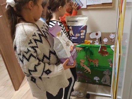 - zbiórka karmy oraz artykułów dla zwierząt- udział w akcjach- “Stop pustym miskom” Stowarzyszenie Dog Rescue