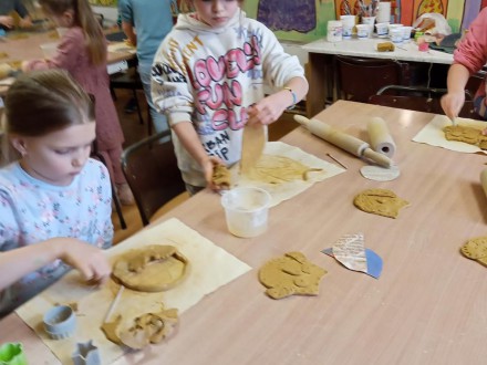 3 marca 2023r. klasa 2c uczestniczyła w warsztatach ceramicznych, które odbyły się w Staromiejskim Centrum Kultury Młodzieży. Uczniowie poprzez udział w zajęciach doskonalili koordynację wzrokowo – ruchową, rozwijali wyobraźnię, ćwiczyli koncentrację uwagi i planowanie przestrzenne. Dzieci z dużym zaangażowaniem przystąpiły do wykonania swoich prac. Satysfakcja i radość z efektu była ogromna. Prace zostały wypalone w profesjonalnym piecu ceramicznym, dzięki temu będą trwałe i estetyczne.