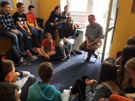 24 kwietnia 2018r, klasa 7a wzięła udział w warsztatach zorganizowanych przez Stowarzyszenie Aktywny Wypoczynek Grzegórzki. Podczas warsztatów uczniowie poznali m.in. najciekawsze triki filmowe, dowiedzieli się w jaki sposób powstają programy telewizyjne na żywo oraz te, nagrywane wcześniej. Gościem specjalnym był pan Jerzy Kramarczyk – polski aktor teatralny, filmowy i dubbingowy, redaktor i wydawca telewizyjny. Odtwórca takich ról jak: porucznik Tomaszek w filmie „Śledztwo porucznika Tomaszka”, Tadeusza Włodarczyka w filmie „Lęk przestrzeni”, odtwórca głosu Strażaka Sama, Smerfów, Listonosza Pata i wielu innych. Pan Jerzy, który okazał się człowiekiem niezwykle dowcipnym, obdarzonym poczuciem taktu, humoru, oraz ogromną sympatią dla młodzieży, pełnił rolę przewodnika po stacji TVN. Na wstępie uczniowie mieli okazję zobaczyć „magię telewizji” tj. sprawdzić osobiście w jaki sposób z małej sali powstaje ogromna hala sportowa, dlaczego i w jaki sposób kręcono film o Janie Meli, jak powstała znakomita produkcja oddająca ostatnie chwile z życia znanej siatkarki Agaty Mróz. Następnie przeszliśmy do studia programu 36,6. Tutaj odbywa się nagranie do jednego z najchętniej oglądanych programów, prowadzonych przez panią Ewę Drzyzgę. Uczniowie nie tylko mieli okazję zasiąść po stronie publiczności, ale również stanąć po stronie kamerzysty i przekonać się, jak powstaje program. Podczas, gdy jedna grupa wcielała się w rolę kamerzystów i publiczności, druga oglądała w reżyserce proces montażu, bieżących poprawek oraz wizualizację z perspektywy widza.