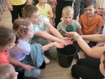 Z okazji Dnia Matki dzieci przygotowały kompozycje z różowych, fioletowych i białych margaretek oraz gałązek krzewu pistacji. Każda praca była wykonywana z dużym zaangażowaniem, a efekt końcowy okazał się niesamowity. Z pewnością każda mama była oczarowana dziełem swojego dziecka.