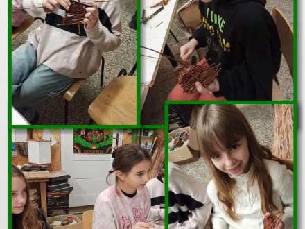 15 .12. klasa 6e wzięła udział w warsztatach bożonarodzeniowych w Żywej Pracowni. Uczniowie próbowali swoich sił w wykonywaniu ozdobnych choinek z wikliny. Praca okazała się trudniejsza niż na początku się wydawało, ale jej ukończenie dało każdemu wiele satysfakcji.