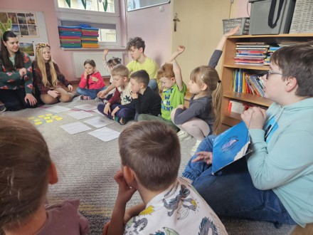 Uczniowie klasy 7b po raz kolejny przeprowadzili lekcję języka angielskiego w Samorządowym Przedszkolu nr 66 w Krakowie. Celem projektu była integracja dzieci i młodzieży oraz zainteresowanie przedszkolaków nauką języków obcych. Zajęcia odbywały się w języku angielskim, a ich tematyka związana była tym razem z nadchodzącymi Świętami Wielkanocnymi. Uczniowie klasy 7b przygotowali bardzo ciekawe i wesołe gry i zabawy. Najmłodsze dzieci nauczyły się jak w języku angielskim nazywają się produkty, które znajdziemy w koszyku wielkanocnym oraz poznały wiele słówek związanych z wiosną. Zajęcia przyniosły wszystkim wiele radości i satysfakcji.