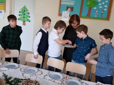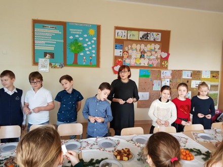 Co roku przed świętami organizowane są w szkole Wigilie. Klasa 3b już po raz trzeci przygotowywała taką klasową uroczystość. Wspólne nakrywanie i dekorowanie stołu, składanie sobie życzeń, smakowanie pysznych wypieków przygotowanych, często z pomocą dzieci, przez mamy oraz śpiewanie kolęd wprowadziły nas w magiczny czas Bożego Narodzenia. Spotkanie przy świątecznym stole było też okazją do porozmawiania o tradycyjnych potrawach i zwyczajach świątecznych w naszych domach. Klasowa Wigilia upłynęła nam w wyjątkowej atmosferze.