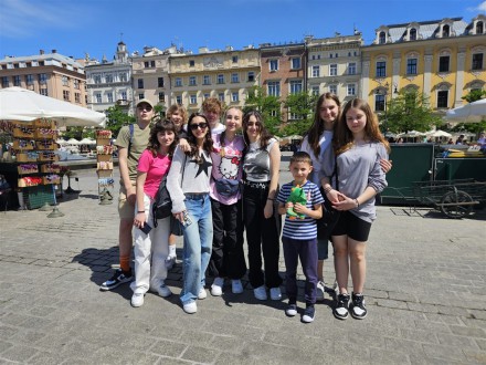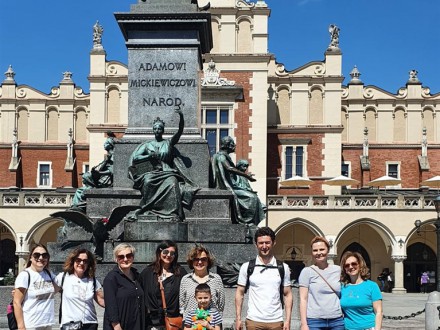 Natomiast w sobotę uczniowie klasy 7b zaprosili swoich włoskich kolegów na spacer po Krakowie – odwiedzili Smoka Wawelskiego, a następnie udali się na Rynek Główny.