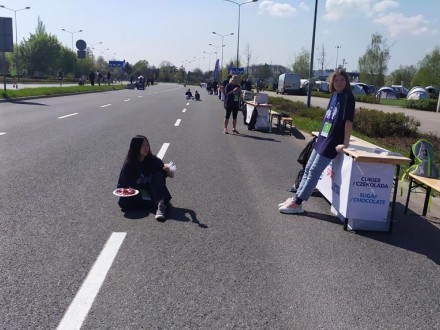 W niedzielny poranek 31 osobowa grupa wolontariuszy stawiła się w komplecie na punkcie odżywczym maratonu zlokalizowanym przy ul. Lema w Krakowie. Po rozdzieleniu zadań uczniowie prężnie zabrali się do pracy - trzeba było przygotować stanowiska z wodą, izotonikami, bananami, czekoladkami i rodzynkami, które później miały służyć wzmocnieniu biegaczy na 35 km trasy. Kiedy na trasie pojawili się pierwsi zawodnicy wszyscy wolontariusze byli zwarci i gotowi do działania - a było co robić, ponieważ w maratonie wzięło udział prawie 6000 osób!