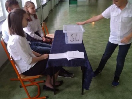 24 października odbyły się Wybory do Szkolnej Rady Samorządu Uczniowskiego. Każdy uczeń z klas 4 - 8 głosował na trzech wybranych przez siebie kandydatów, na specjalnych kartach do głosowania opatrzonych pieczątką szkoły. Karty wrzucano do urny przygotowanej przez uczniów z Pocztu Sztandarowego.