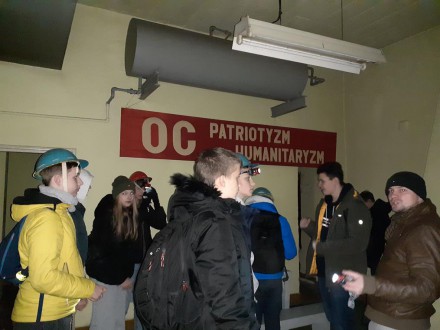 klasy 8D zwiedzając Nową Hutę. Najpierw wizyta w Centrum Administracyjnym Huty, potem spacer w podziemnych schronach. Niezwykle ciekawa ekspozycja pozwoliła na chwilę przenieść się do epoki komunizmu. Spacer wokół nowohuckiego zalewu, a potem przez Plac Centralny i dotarcie do sławnego nowohuckiego krzyża. Jeszcze kilka kroków pod Kościół Arka Pana i można wracać do domów. Było trochę zimno, ale niezwykle ciekawie i wesoło