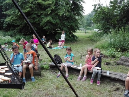 Z okazji Dnia Dziecka uczniowie z klas I a i I b pojechali na wycieczkę do Branic, gdzie mieści się oddział Muzeum Archeologicznego. Najpierw pani przewodnik opowiadała o zgromadzonych w zabytkowej wieży eksponatach. Dzieci dowiedziały się też czym zajmuje się archeolog. Później przyszedł czas na praktyczne działania. Uczniowie wzięli udział w warsztatach ceramicznych, w trakcie których, wzorując się na oglądanych wcześniej eksponatach, wykonali amulety, ozdoby, figurki. Świetną zabawą okazały się warsztaty archeologiczne. Stanowisko, na którym odbywały się poszukiwania, obfitowało w koraliki, elementy ceramiczne i inne skarby. W trakcie wycieczki był również czas przeznaczony na zabawy ruchowe i sportowe gry. Na koniec odbyło się ognisko. Po dniu pełnym wrażeń i sporej porcji ruchu, znakomicie smakowały upieczone nad ogniskiem kiełbaski.