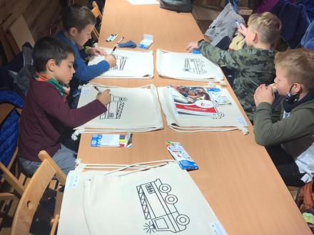 Obie klasy uczestniczyły również w warsztatach. Klasa 3b dowiedziała się w jaki sposób ludowy strój krakowski stał się strojem narodowym zakładanym na różnorodne uroczystości. Uczniowie malowali bawełnianą torbę ze wzorem haftu z gorsetu krakowskiego. Natomiast klasa 3f uczestniczyła w warsztatach ,,Ogniki’’ w zrekonstruowanej remizie strażackiej ze Złotnik. Zajęcia miały na celu zapoznanie dzieci z zawodem i pracą strażaka oraz historią pożarnictwa i rolą Ochotniczej Straży Pożarnej. Wycieczka była prawdziwą lekcją historii i obie klasy wróciły z niej bardzo zadowolone.