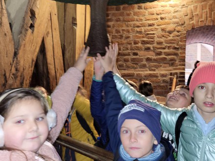 Następnym punktem wycieczki było wyjście wąskimi schodami na Wieżę Zygmuntowską i zobaczenie 12- tonowego dzwonu zwanego „Zygmuntem”. Zgodnie z legendą dzieci dotykały dzwonu i wypowiadały w myślach najskrytsze marzenia. Z okien Wieży Zygmuntowskiej podziwiały panoramę naszego miasta.