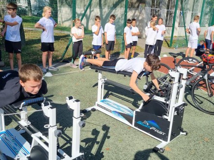 W ubiegły piątek w naszej szkole mieliśmy bardzo ciekawe wydarzenie sportowe. Odwiedzili nas goście z Polskiego Związku Triathlonu i nasi uczniowie mogli poznać nową, ciekawa dyscyplinę olimpijską – triathlon. Triathlon to trójbój, gdzie zawodnicy mają do pokonania określony dystans pływacki, kolarski i biegowy.
