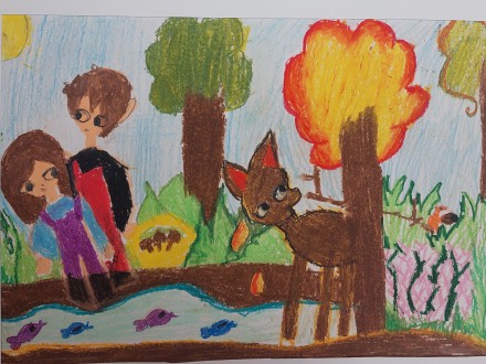 Zadaniem uczniów było wykonanie pracy plastycznej hasłem „ Życie lasu ”, ukazującej piękno przyrody pod. Po przybliżeniu uczniom tematyki , dzieci z wielkim zaangażowaniem wykonały prace plastyczne. Na konkurs wytypowano osiem prac.
