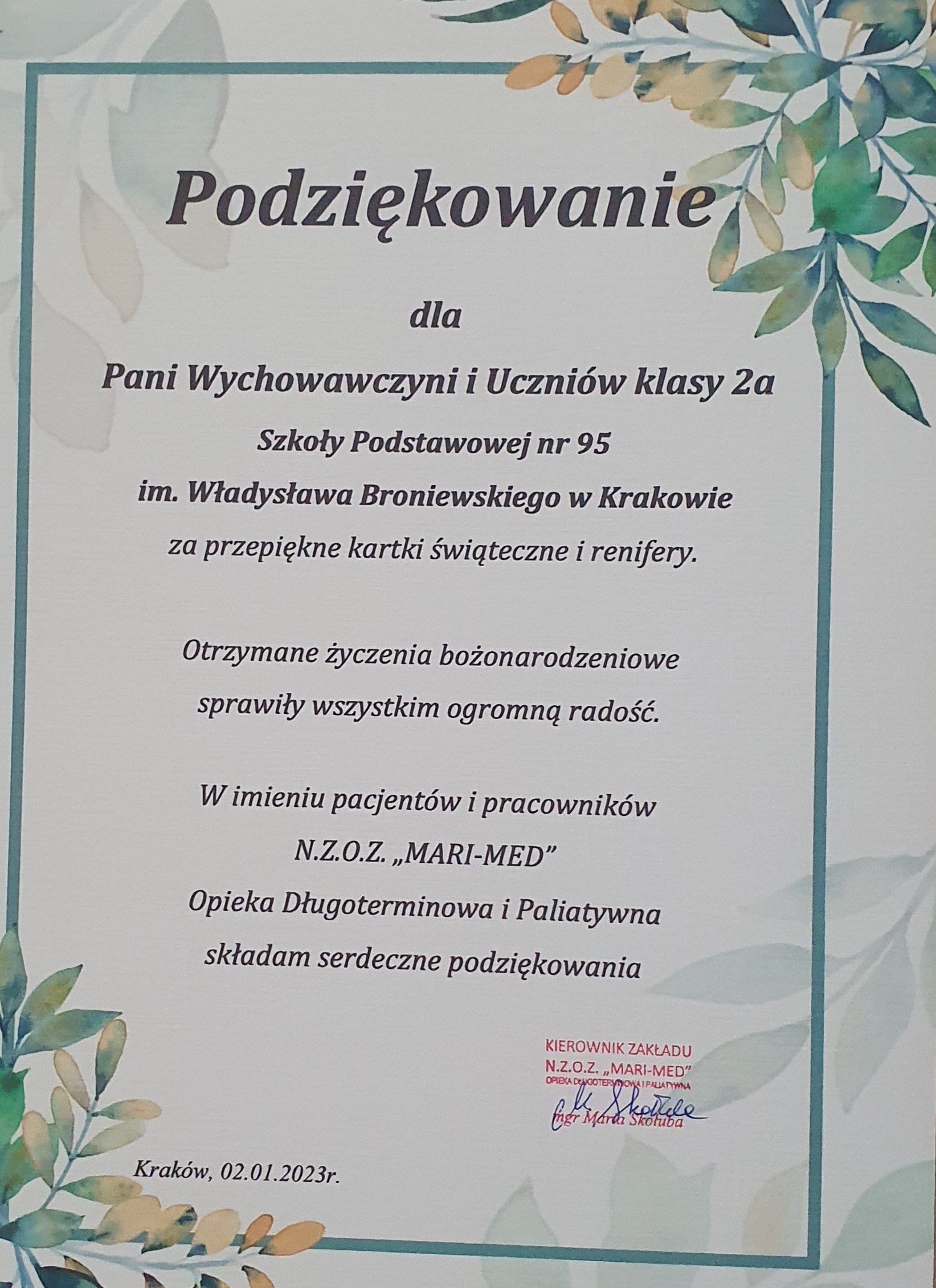 Życzenia dla Pacjentów Zakładu Opieki Długoterminowej i Paliatywnej